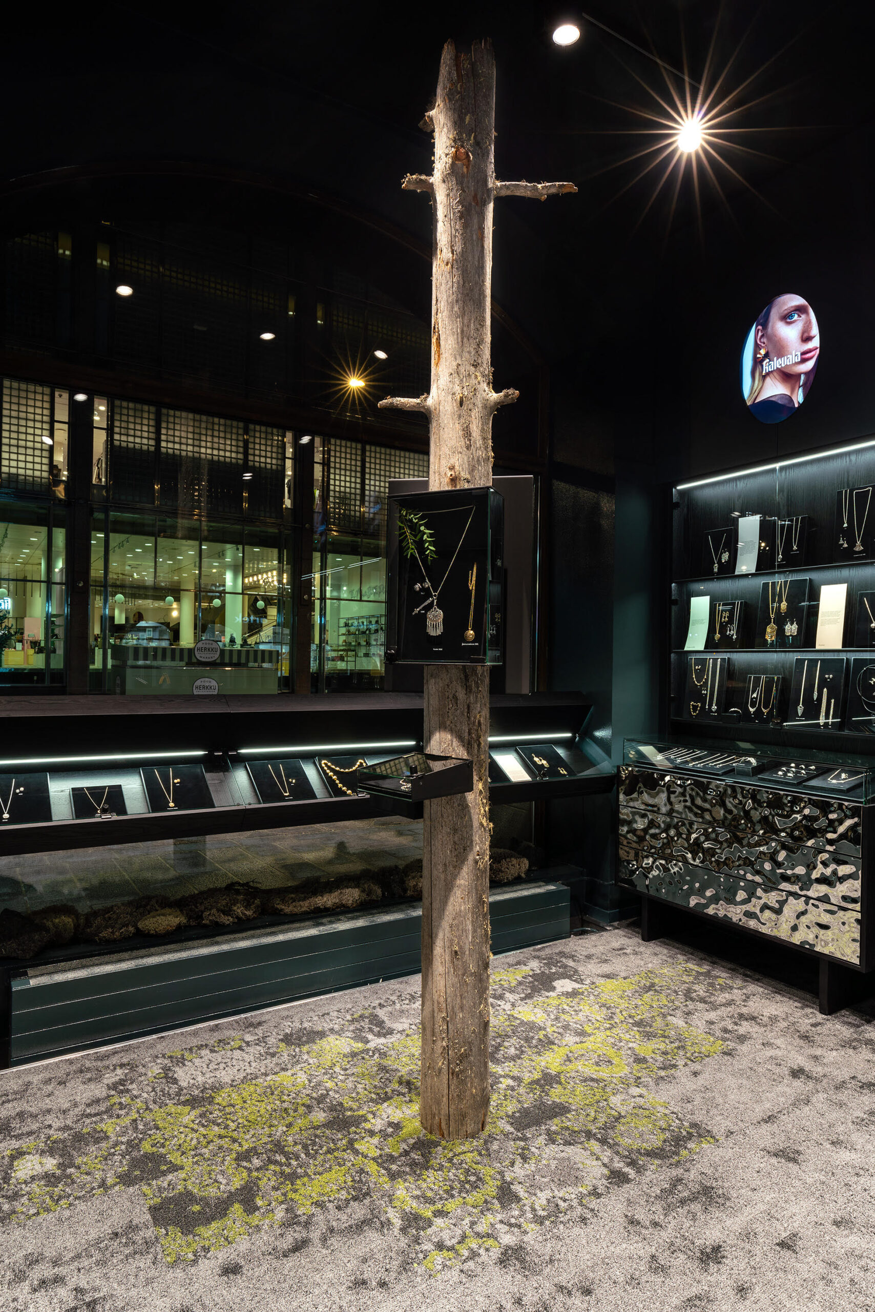 Bond Design Office revamped the Kalevala Jewelry brand. As part of this renewal, the flagship store on Keskuskatu in Helsinki was also updated. Bond designed spruce log jewelry displays for the store and contacted us.